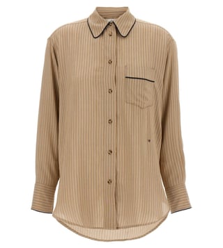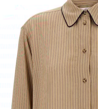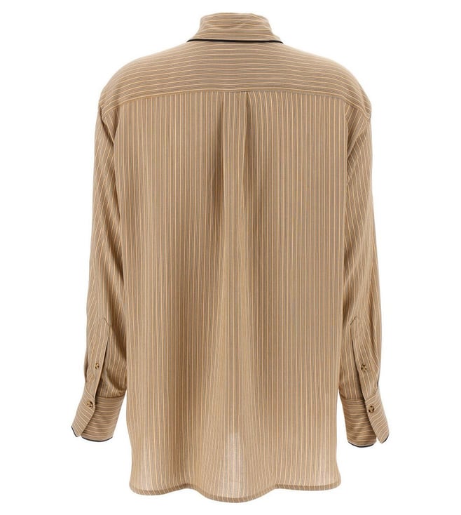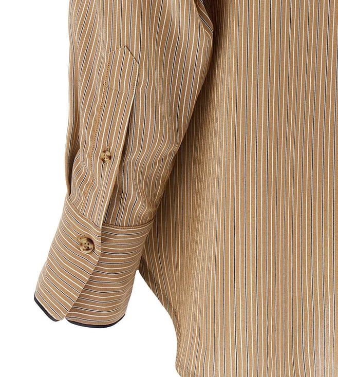 Victoria Beckham Brown Piping Detail Pyjama Striped Relaxed Fit Shirt
