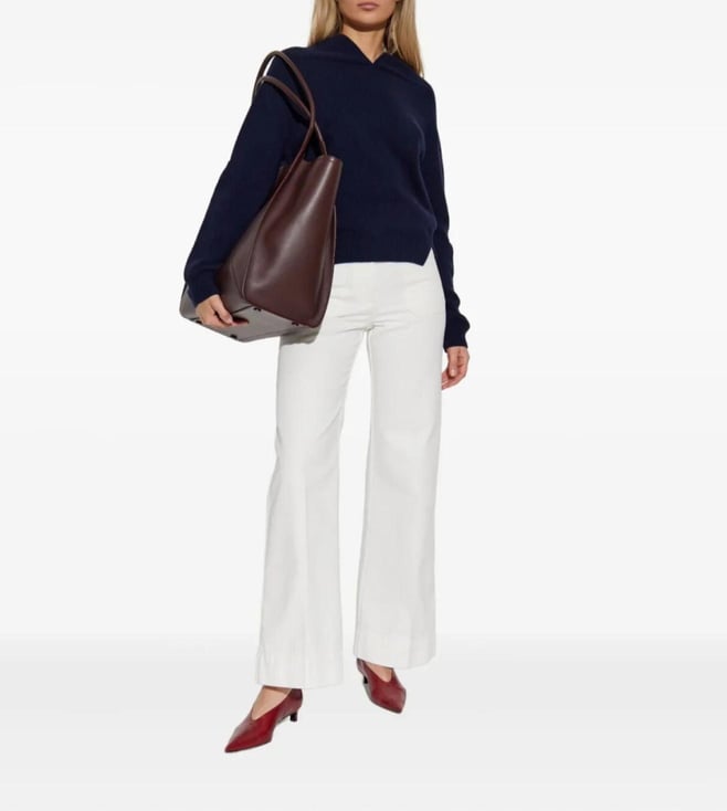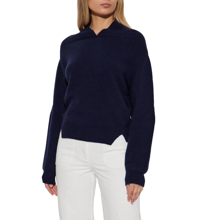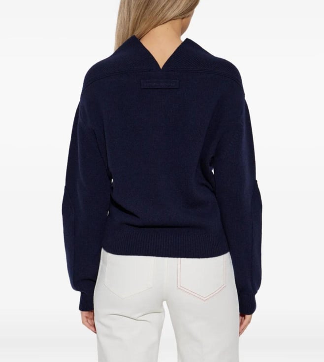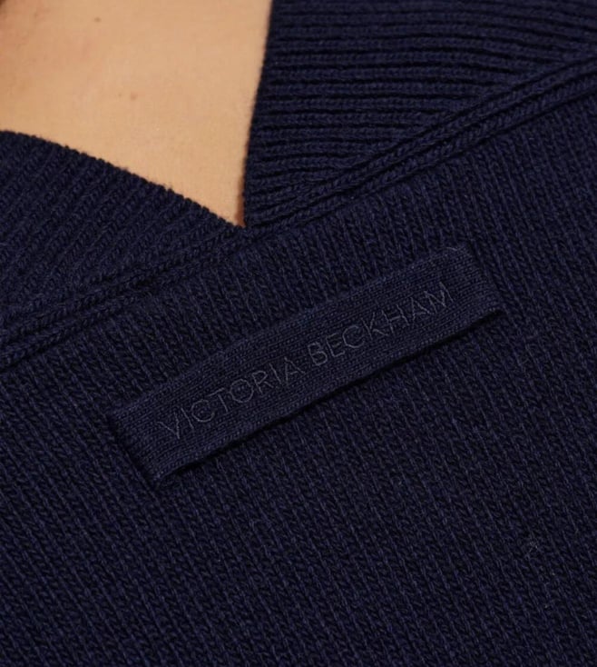 Victoria Beckham Navy Blue Wool Blend V-Neck Jumper