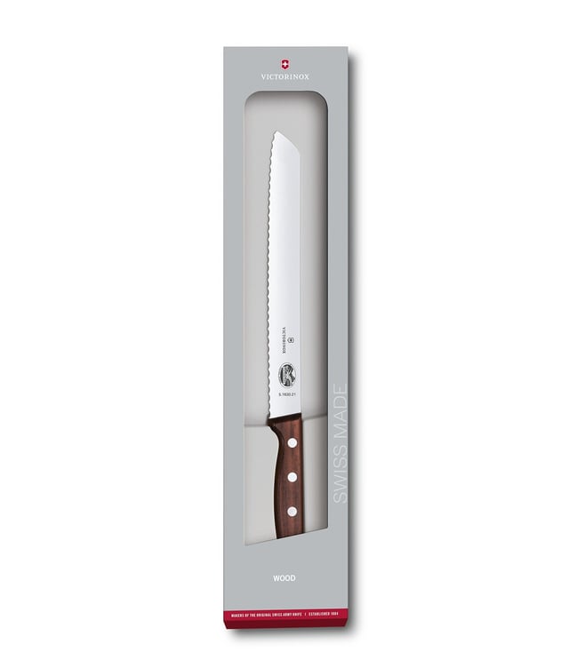 VICTORINOX Swiss Made Brown Wavy Edge Bread Knife - 21 cm With Gift Box