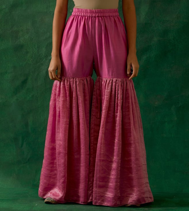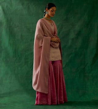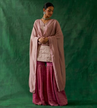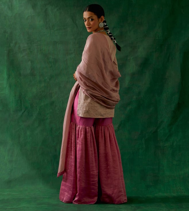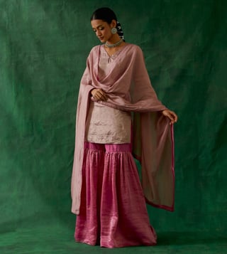 Vinusto Hot Pink Zari Silk Short Kurta with Chanderi Handloom Dupatta and Gharara
