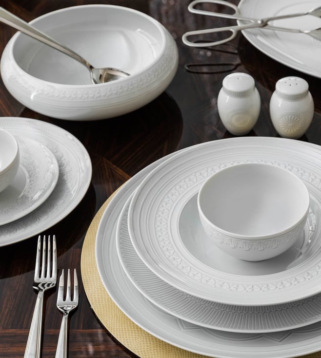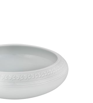 Inspired by the ceilings of the Vista Alegre palace, Ornament surprises with its sophistication and subtlety of the white relief on the white pieces, uniting classical architecture and contemporary design. This Salad bowl with delicate shapes and unique details will grace your table.