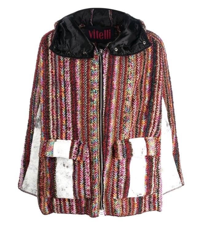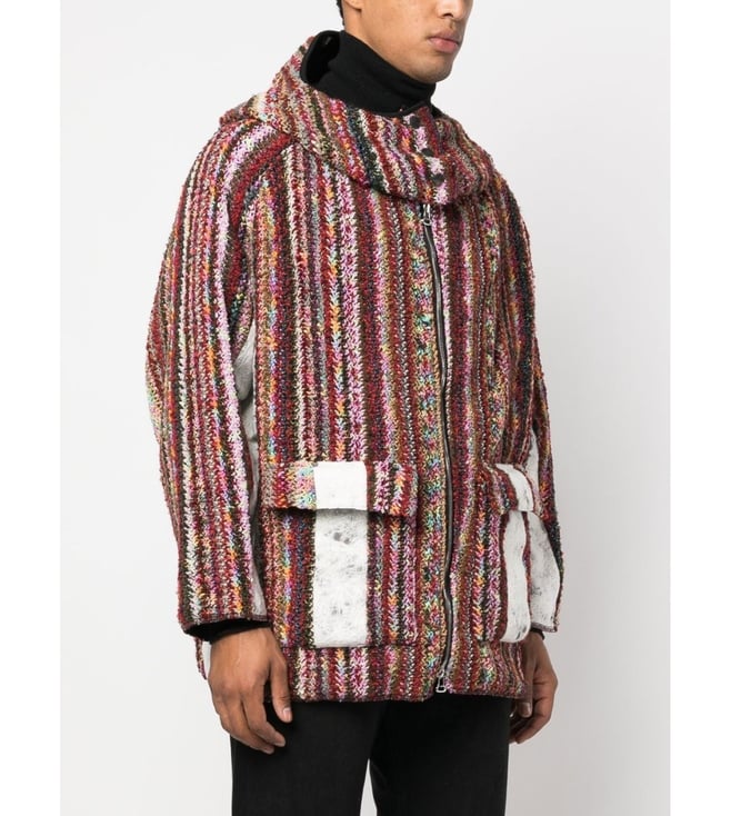 Elevate your style with the Vitelli Multicolor Striped Regular Fit Cardigan. Knitted, hooded, long sleeves and pockets. This piece fits true to size. recommend you get your regular size model is 1,84m / 6ft 1in wearing size 2 (num). Products purchased from Darveys are supported exclusively by the warranty/exchange policies of Darveys and its partner boutiques. Brand owners and their channel partners are not responsible for exchange/warranty services for items purchased through Darveys.