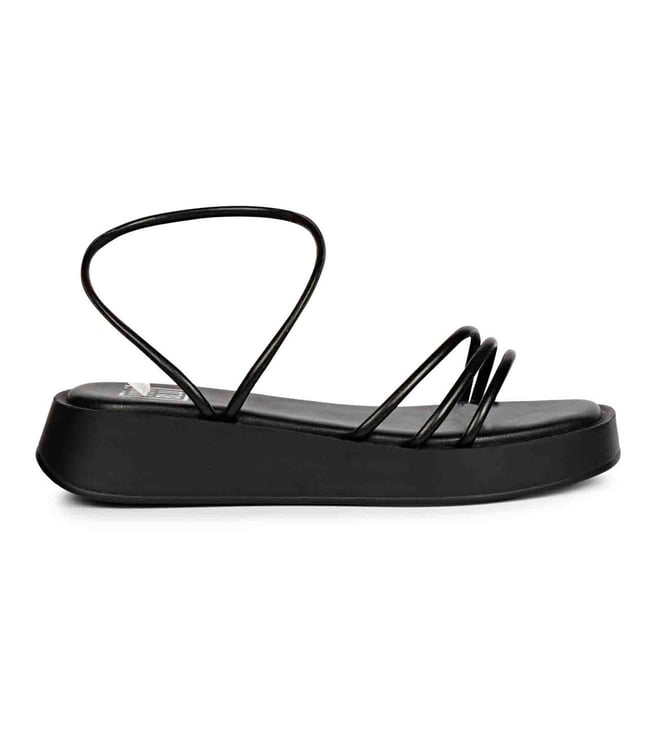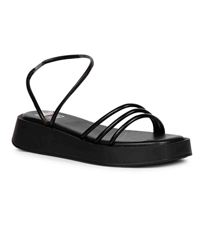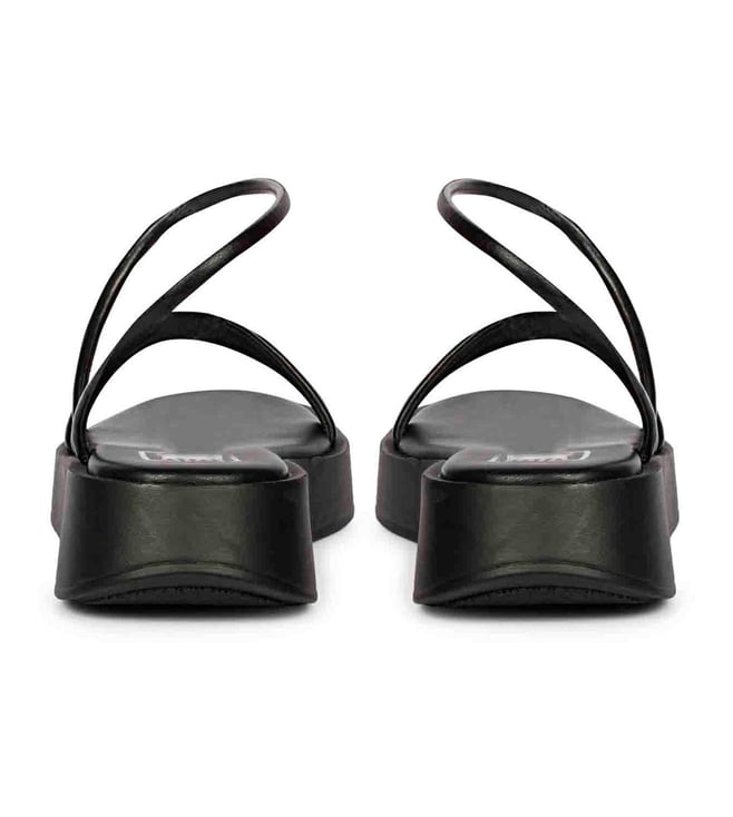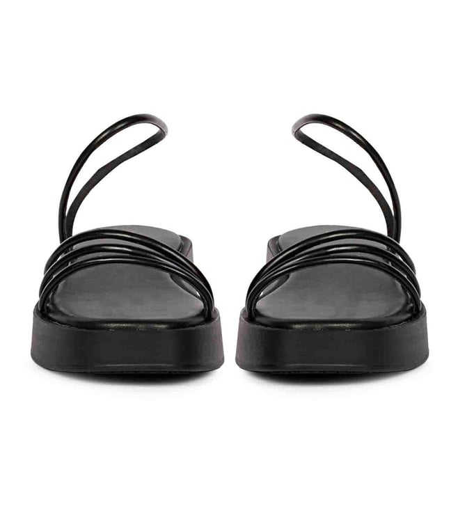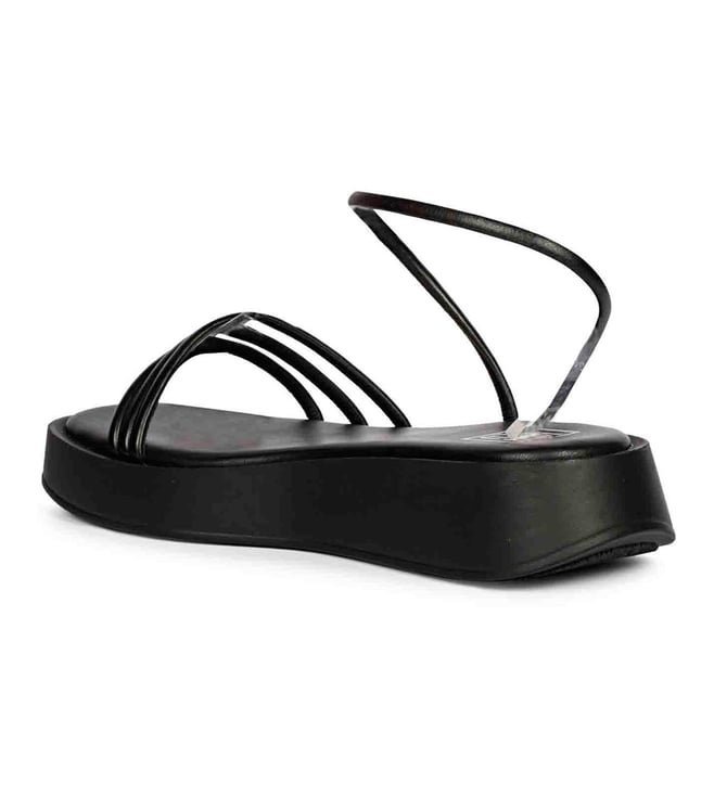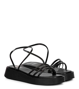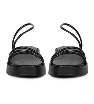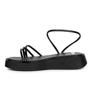 Hit the road in style by wearing this pair of black sandals from the house of ViviBlu. It features a sturdy genuine leather upper which ensures durability and improves the overall look. The slip-resistant TPR sole and the square shaped tip ensure comfort. Wear it on any casual occasion with a ruffled top to look impeccable.