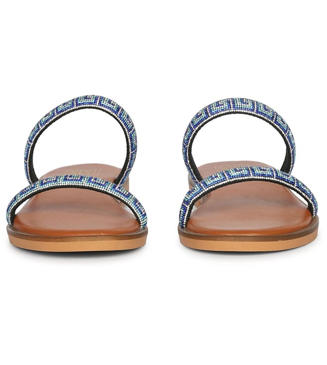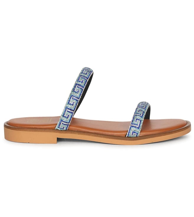 Elevate your summer style with Viviblu womens blue slide sandals. These chic slides feature a trendy z cord upper adorned with stylish stud detailing, perfect for adding flair to any outfit. Crafted with a soft blue pu lining and durable tpr sole, these sandals offer both comfort and grip for all day wear. Step out in modern elegance with these versatile and eye catching sandals that will surely become a staple in your footwear collection.