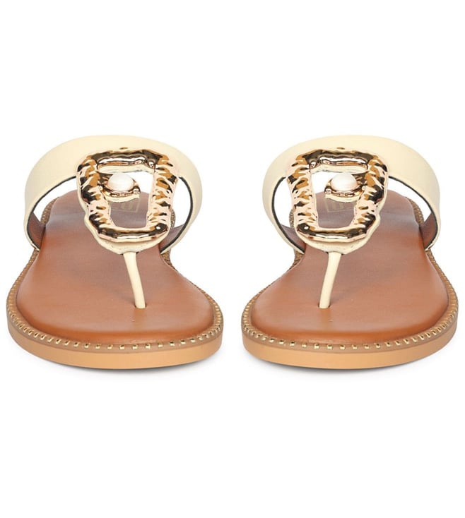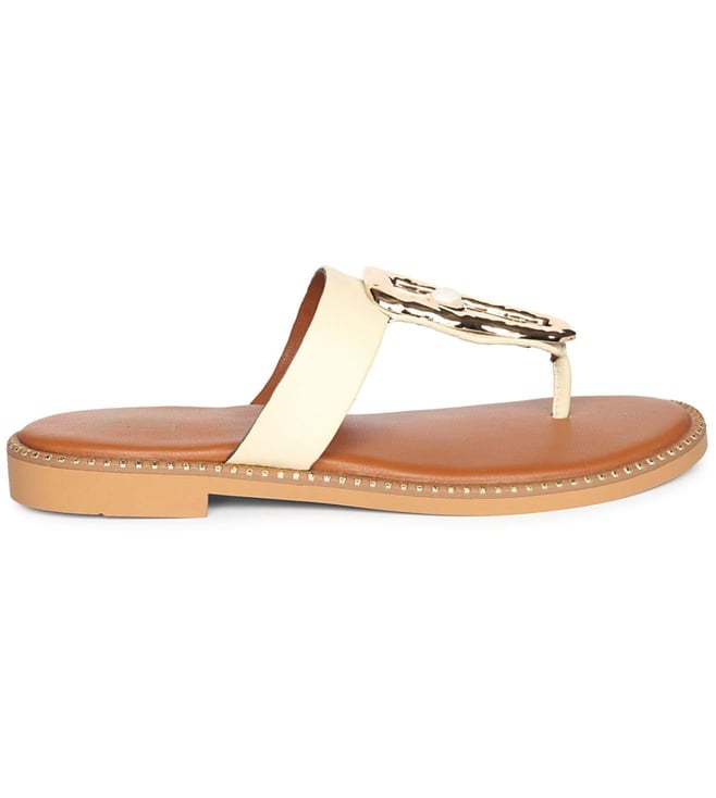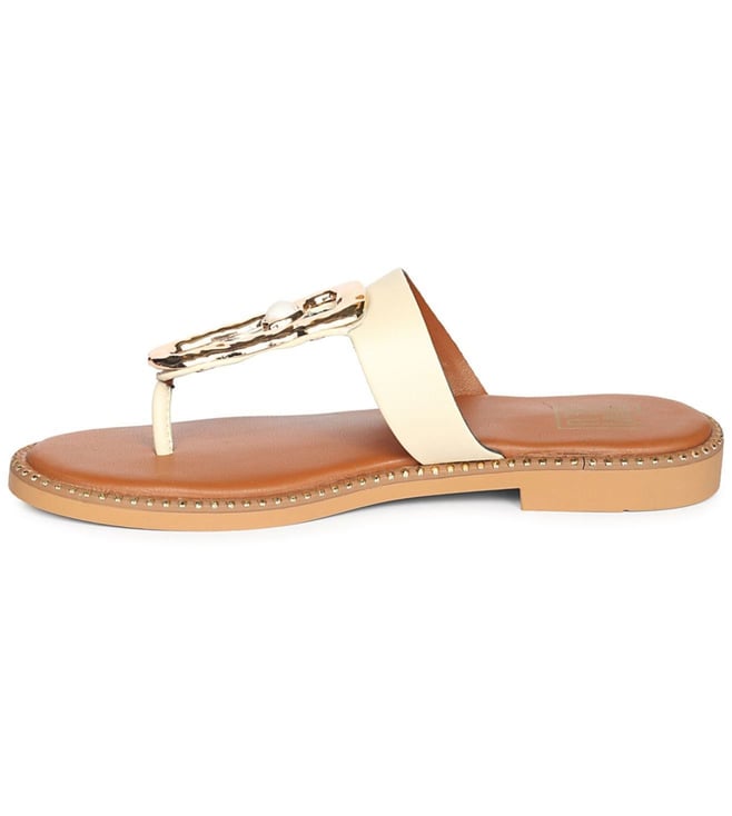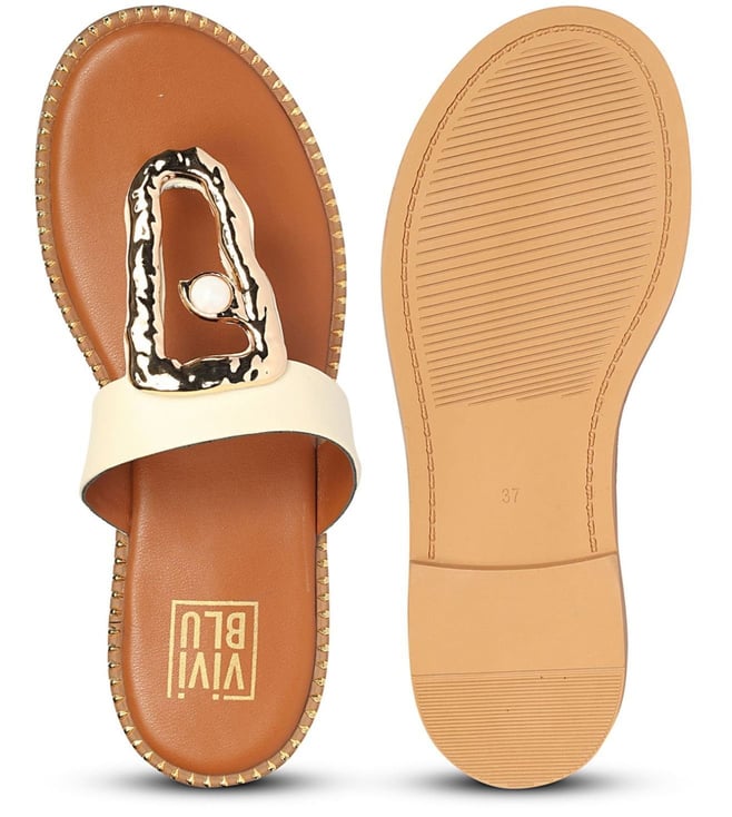 Step into comfort and style with Viviblu womens off white t strap sandals. Crafted with a luxurious sheep nappa upper and chic gold trim adorned with off white stone detail, these sandals exude elegance. The soft tan pu lining and durable tpr sole ensure all day comfort and long lasting wear. Elevate your look with these versatile sandals that offer the perfect blend of fashion and function. Say hello to your new go to pair for any occasion.