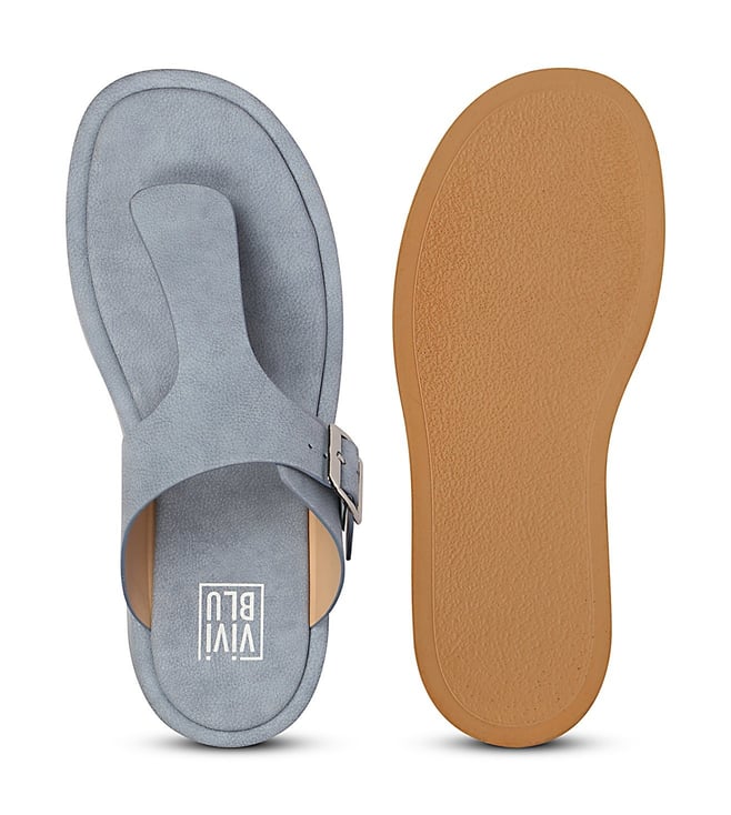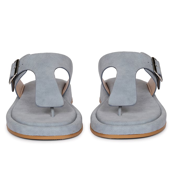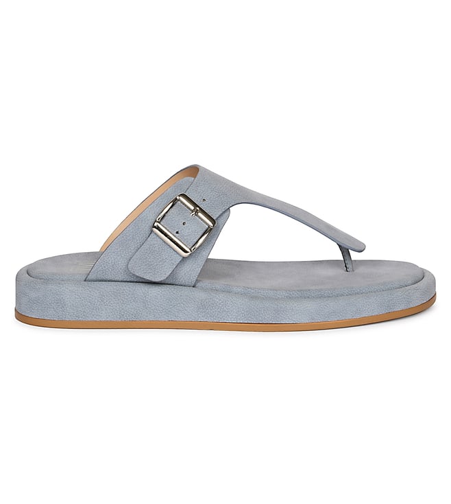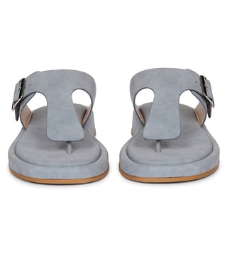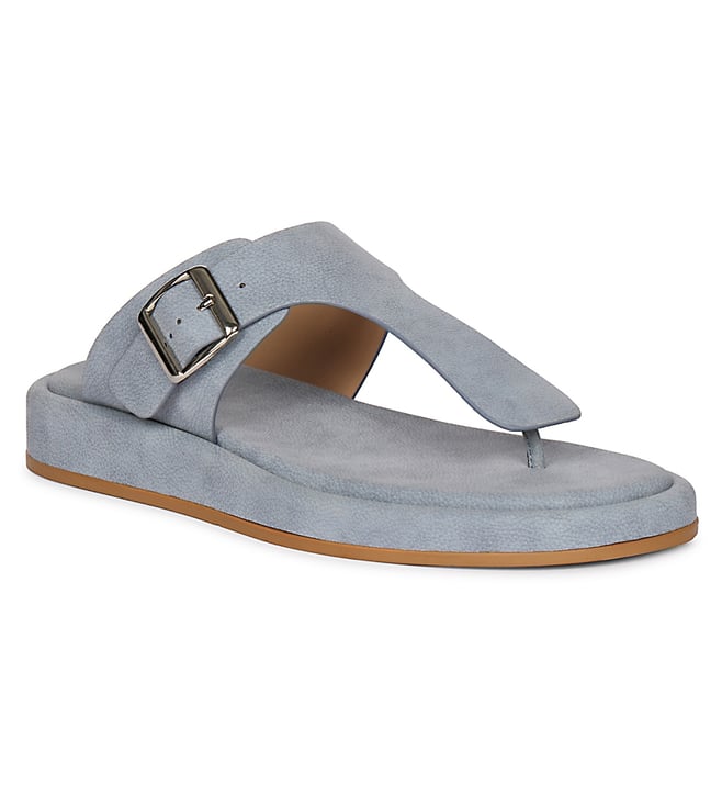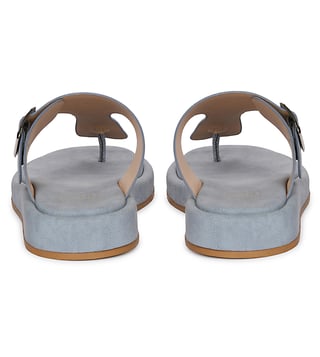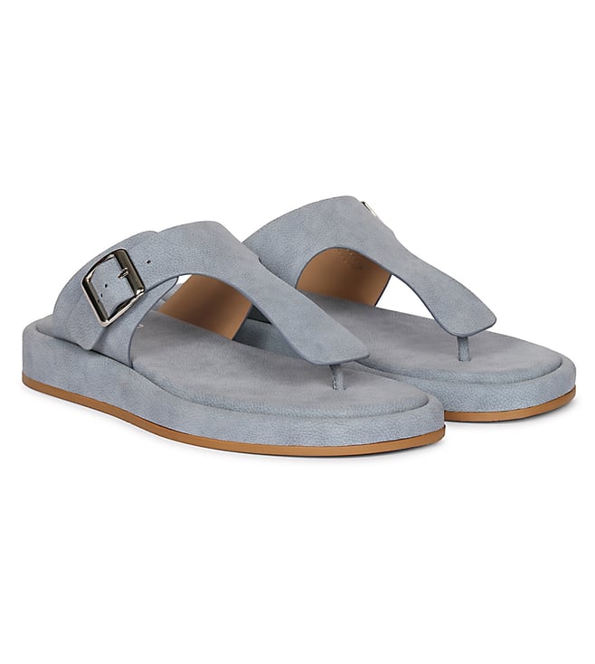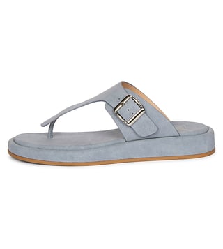 Women's Blue Nubuck Leather Solid Buckle Sandals