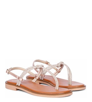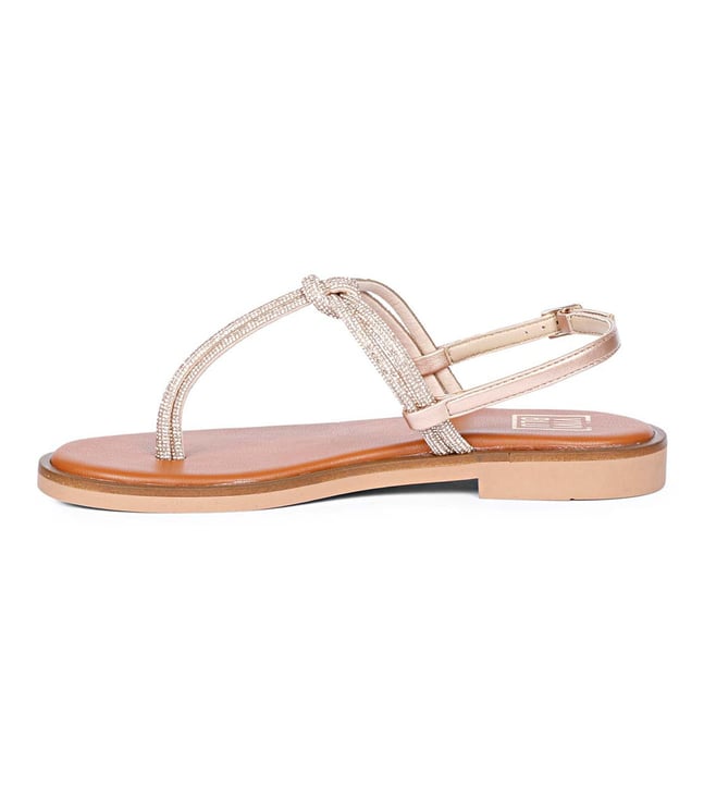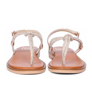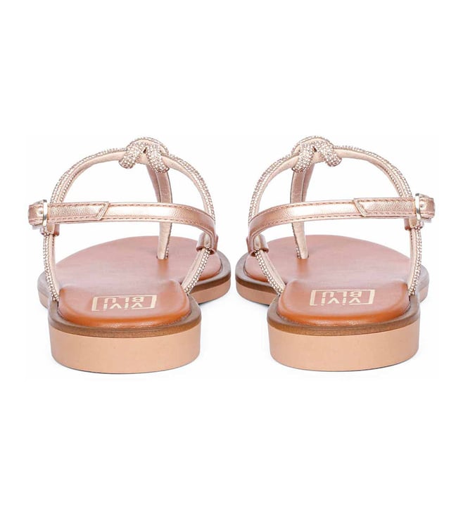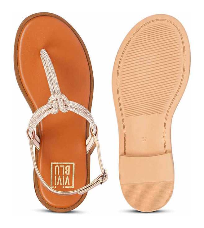 Slip into this pair of champagne sandals from ViviBlu and give your personal style a new spin. This pair comes with genuine leather upper that offers a snug fit to your feet. The TPR sole gives your feet ultimate comfort. Team it with your ethnic wear for a perfect traditional look.