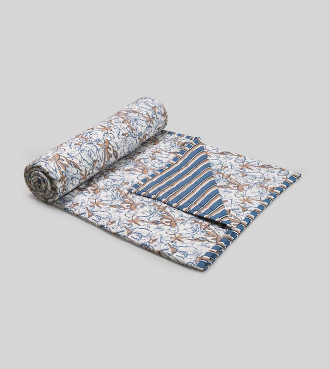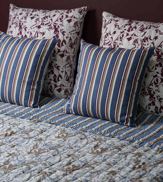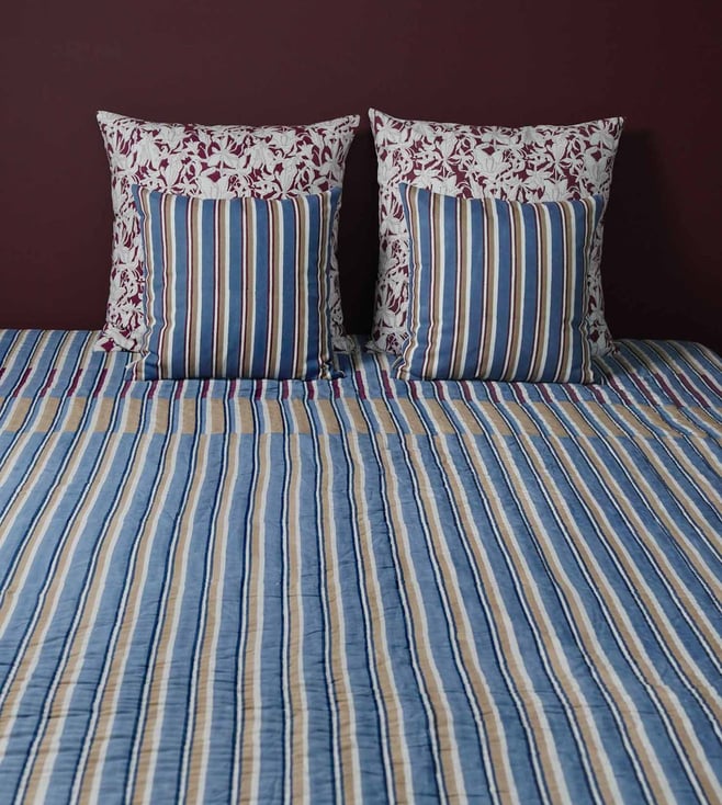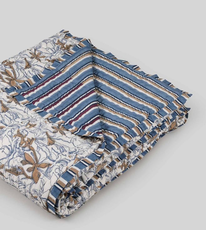 VIYA Blue & Maroon Spring Bouquet Cotton King Size Quilt