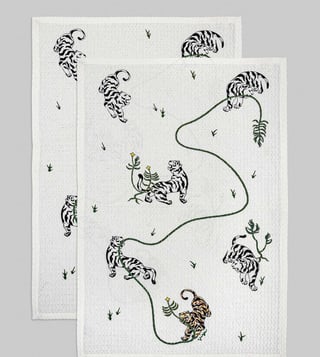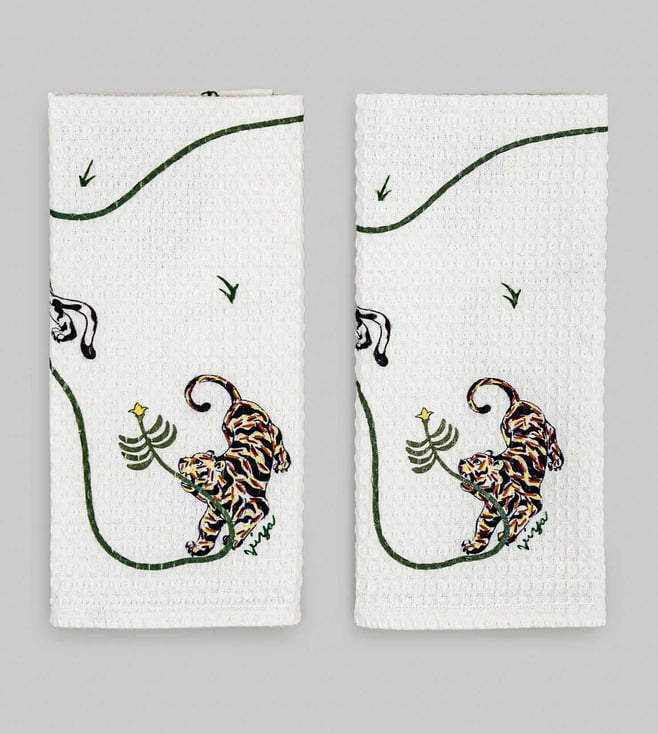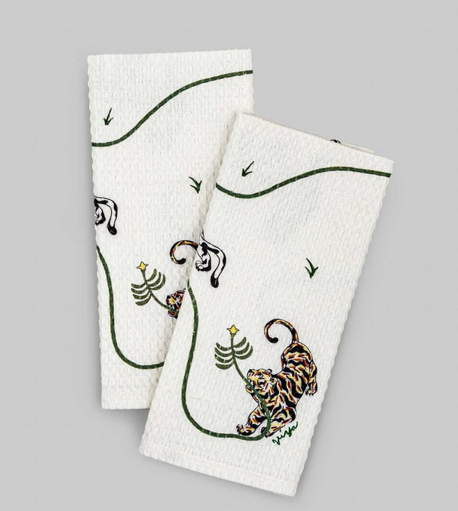VIYA Ecru Lurking Crocodile Cotton Hand Towels Set Of 2
