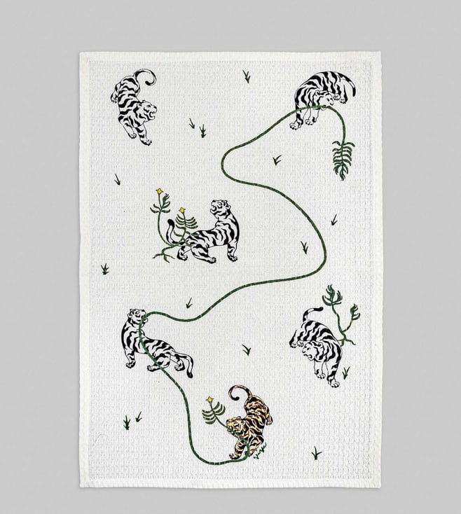 Step into our enchanting Indian menagerie, where the essence of the jungle intertwines harmoniously with the depths of human imagination. Behold a traversing elephant, a lounging Bengal tiger, a slithering cobra, and a majestic blackbuck, amidst a lurking crocodile swimming in a sea of silk. This collection draws inspiration from the profound symbolism shared between humans and animals in Indian culture, celebrating the enduring connection between mankind and the natural world.