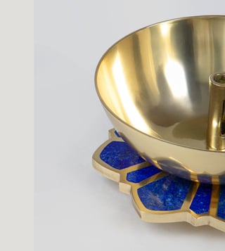 This collection of objects embodies an effortless interplay of form, ritual and function, steeped in the rich heritage of India. Crafted through a masterful blend of ancient metalworking techniques, each piece from thalis and bowls to diyas and candle stands is inlaid with semi-precious stones. Inspired by the vibrant narratives of Pichwai paintings and the bountiful essence of India's flora and fauna, these objects lend this unique take on the sense of celebration in India as a modern heirloom for the home.