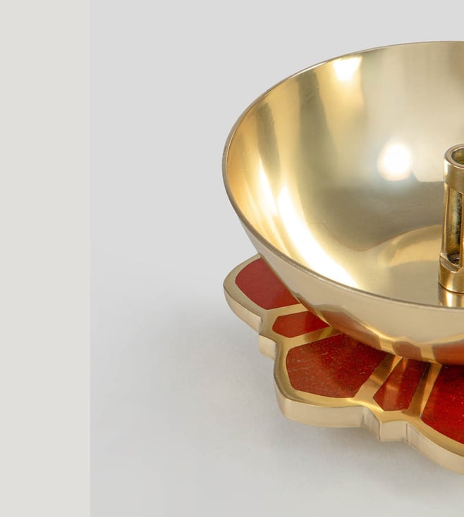 This collection of objects embodies an effortless interplay of form, ritual and function, steeped in the rich heritage of India. Crafted through a masterful blend of ancient metalworking techniques, each piece from thalis and bowls to diyas and candle stands is inlaid with semi-precious stones. Inspired by the vibrant narratives of Pichwai paintings and the bountiful essence of India's flora and fauna, these objects lend this unique take on the sense of celebration in India as a modern heirloom for the home.