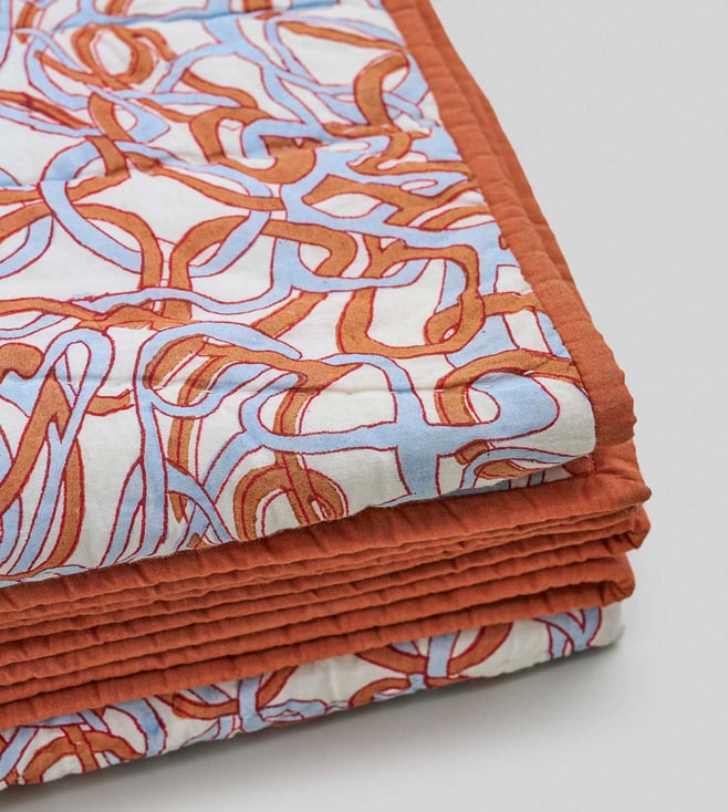 VIYA Orange & Blue Paigah Cotton King Size Quilt