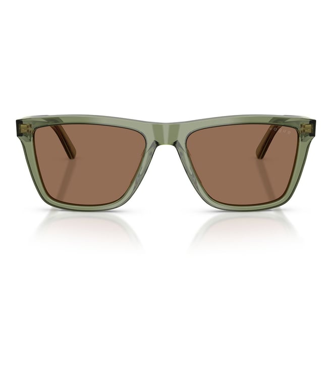 You will be ushered with compliments when you wear this pair of Sunglasses from Vogue Eyewear. Designed from Acetate, the Green-hued frame assures utmost comfort with its lightweight make. The Blue lenses are made with care from Plastic that keeps your eyes protected without compromising on the style. The Full Rim design adds to its overall appeal.