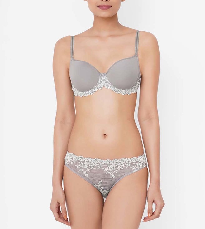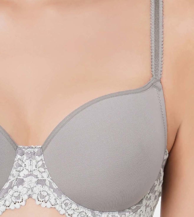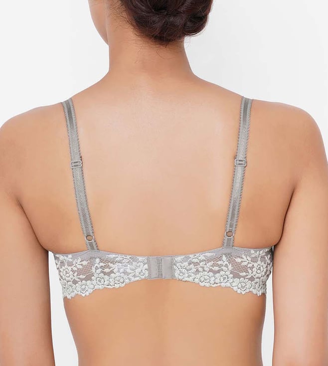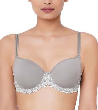 Silky to touch, this hushed grey lace pattern bra from Wacoal is a must have. This under wired padded seamless bra with half coverage is crafted to give you the support you need. Crafted from high quality fabric, it will keep you comfortable throughout the day.