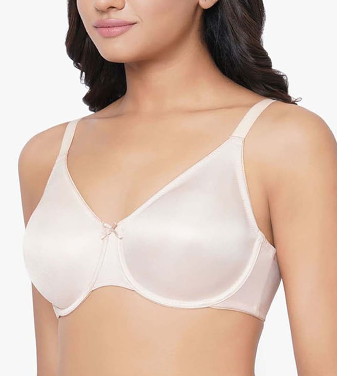 Find the right fit you've always yearned for in this stylish cream minimizer bra from the latest collection of Wacoal. Beautifully tailored in premium stretch nylon for luxurious, feather-like softness, unmatched comfort and lasting strength, it's well-designed silhouette complemented by the under-wired and non-padded features, ensures that it sits best on your body for excellent support, least bounce and a joyous wear experience. It's so good you'd never want to take it off!