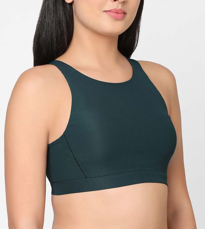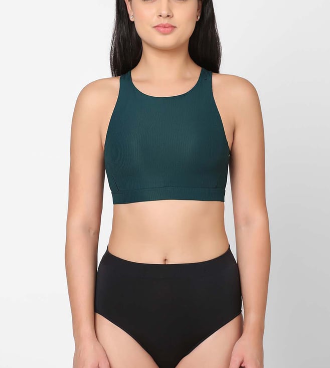 Workout gets more enjoyable with this teal bra from Wacoal. As it is non-wired and padded, this sports bra offers the required support and full coverage. Made of high quality, this sports bra will be a perfect addition to your lingerie wardrobe.