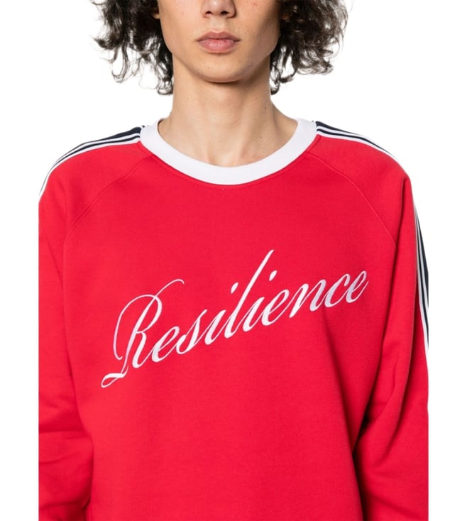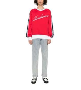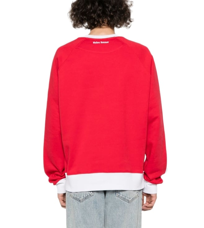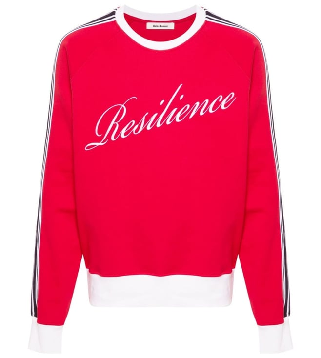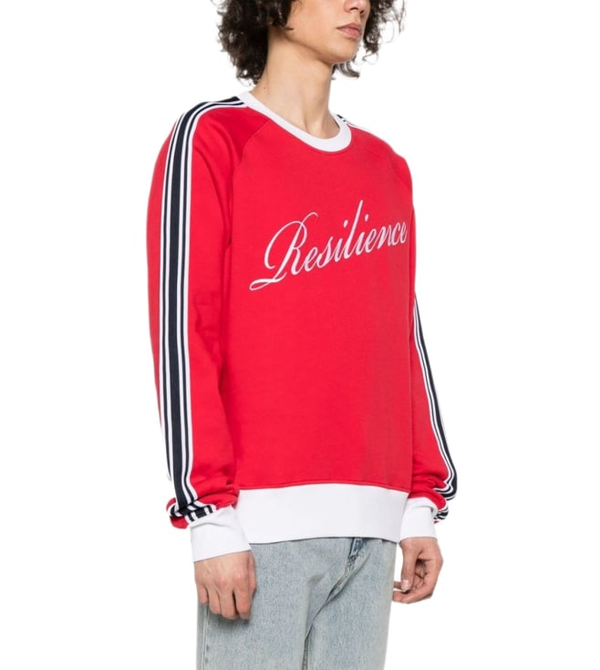Elevate your style with the Wales Bonner Red Typography Sweatshirt. Sweatshirt with slogan by wales bonner in red, featuring a crew neck, long sleeves, ribbed hems, printed slogan on the front, side striped details. Chest: 120.0 Centimetres length: 66.0 Centimetres. Products purchased from Darveys are supported exclusively by the warranty/exchange policies of Darveys and its partner boutiques. Brand owners and their channel partners are not responsible for exchange/warranty services for items purchased through Darveys.
