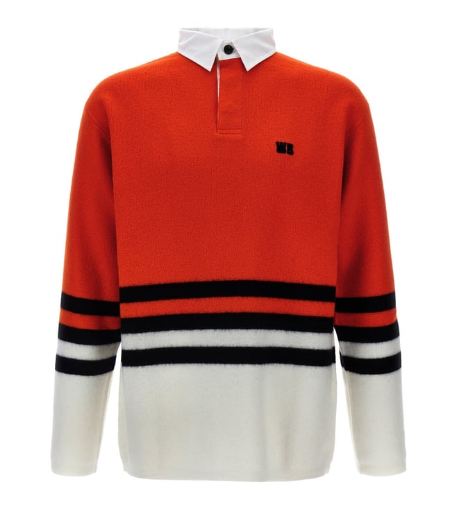 Orange Striped V-Neck Collar Sweater