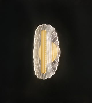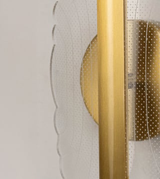 The Acrylic Aisle LED Wall Light Gold merges elegant form with radiant function. Designed with a delicately etched acrylic panel and a luxurious gold-finished spine, this wall lamp casts a soft, ambient glow through its integrated LED, making it ideal for upscale hallways and modern accent walls. Key Features: Intricately textured acrylic panel with glowing edge illumination Polished gold metal spine for a refined, contemporary look Integrated in-built LED for energy-efficient, long-lasting lighting Crafted from high-quality metal and sculpted acrylic.