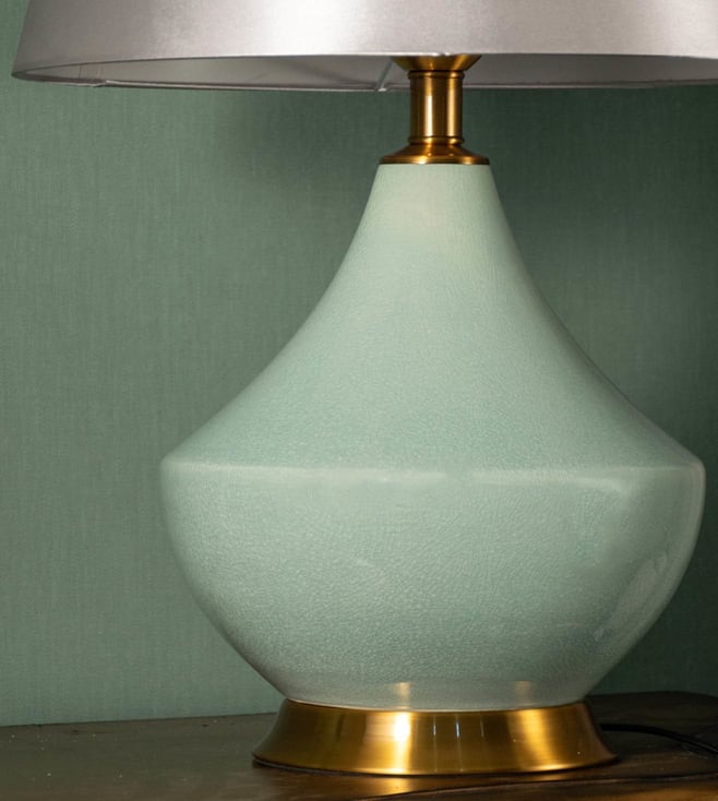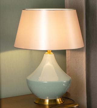 The Whispering Homes Aqua Blue Ceramic Table Lamp is the perfect addition to any home. It's stunning blue colour will add a vibrant pop of colour to your room, and its ceramic base will blend beautifully with many different decor styles. This lamp is an ideal way to bring light and style into your home, adding a welcoming and warm ambiance. Disclaimer: All other items in the image are only for display purposes and will not be a part of the delivery content. Product colour may slightly vary due to photographic lighting sources. Country of Origin - India.