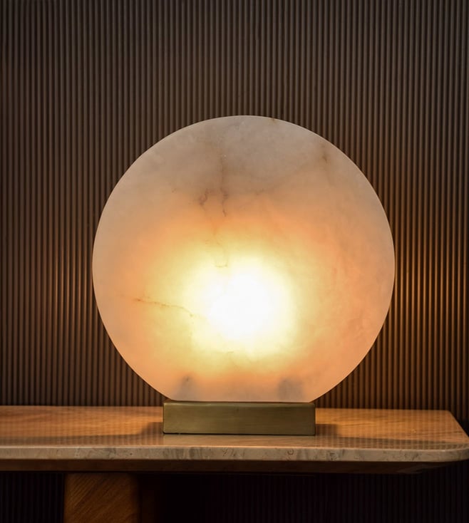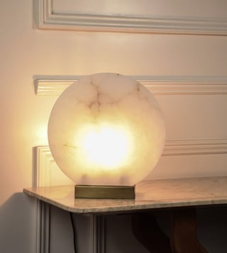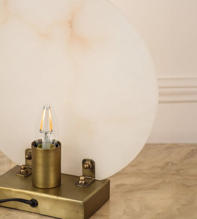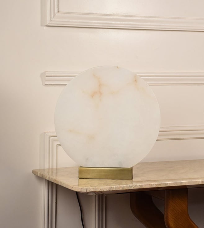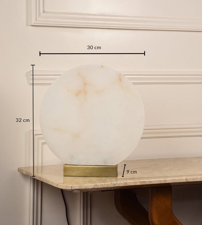 Illuminate your space with the Whispering Homes White & Gold Marble Table Lamp, featuring an elegant design that blends sophistication and style seamlessly. Disclaimer: All other items in the image are only for display purposes and will not be a part of the delivery content. Product colour may slightly vary due to photographic lighting sources. Country of Origin - India.