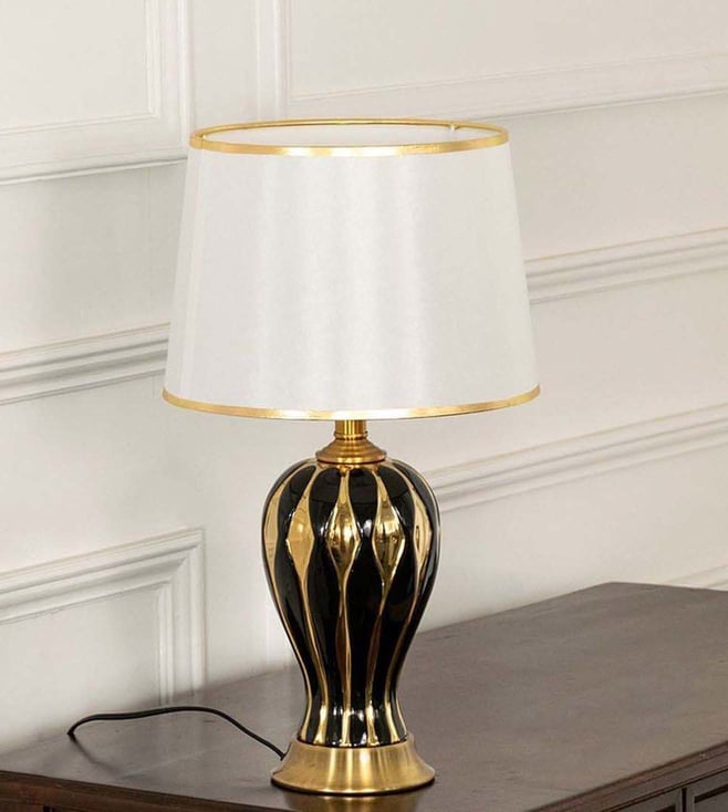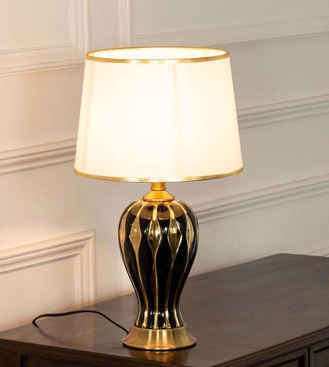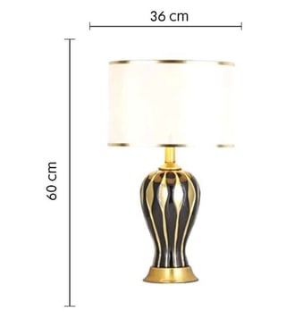 The dazzling epitome of Asian art and culture with an essence of designer lighting, this table lamp with beautiful grooves is just a perfect pick to give a rich antique look to your home decor. The glossy body with symmetric designs makes it look more intense and magnified. The shade with detail on the rim when lit, creates a magical look which is a feast for the eyes. It has been made using ceramic.