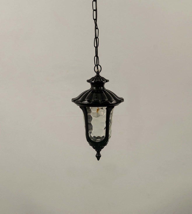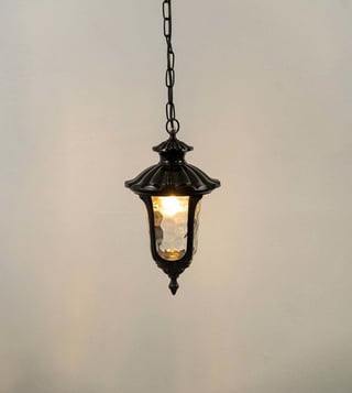 Illuminate your space with the Whispering Homes Black Metal Hanging Light. Its modern design and sleek black finish enhance any decor. Disclaimer: All other items in the image are only for display purposes and will not be a part of the delivery content. Product colour may slightly vary due to photographic lighting sources. Country of Origin - India.
