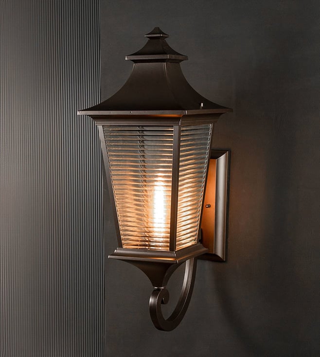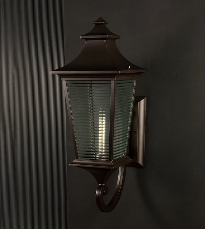 The Whispering Homes Brown Metal & Glass Wall Light adds a stylish touch to your decor, featuring a chic design that complements any space with its elegant brown finish. Disclaimer: All other items in the image are only for display purposes and will not be a part of the delivery content. Product colour may slightly vary due to photographic lighting sources. Country of Origin - India.