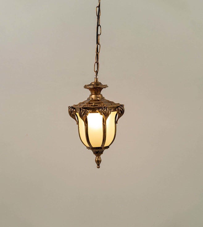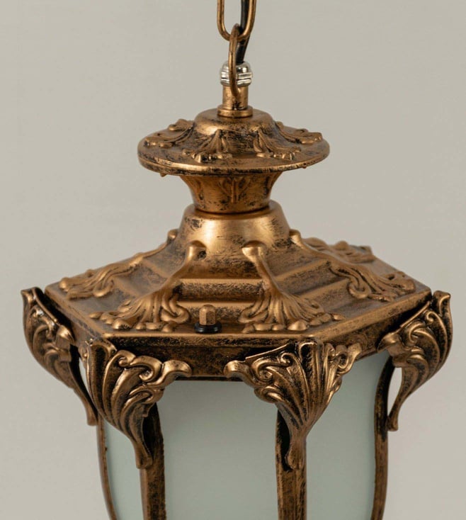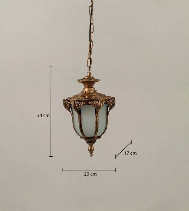 Illuminate your space with the Whispering Homes Bronze Metal Hanging Light. Its elegant design adds a touch of sophistication to any room. Disclaimer: All other items in the image are only for display purposes and will not be a part of the delivery content. Product colour may slightly vary due to photographic lighting sources. Country of Origin - India.