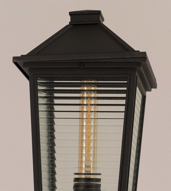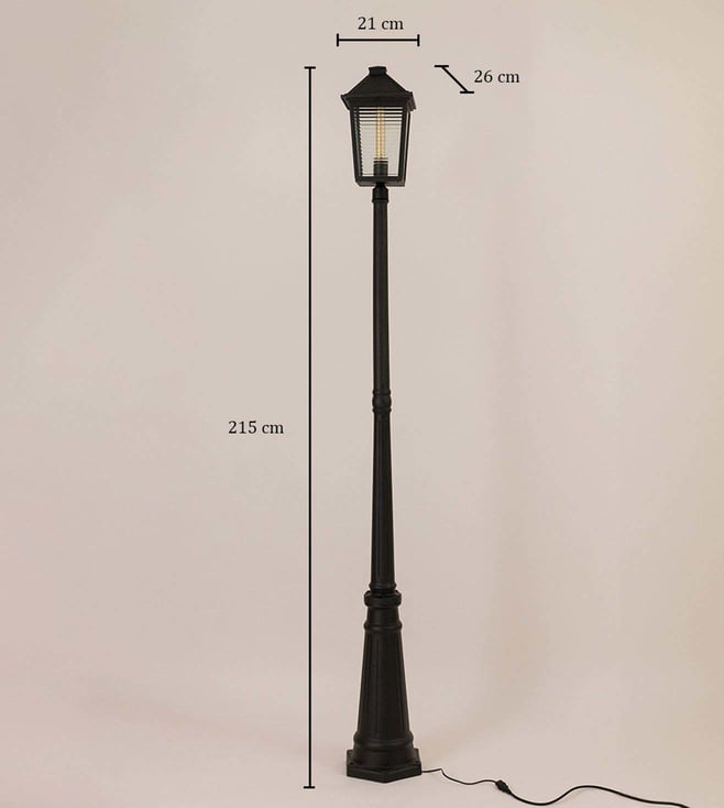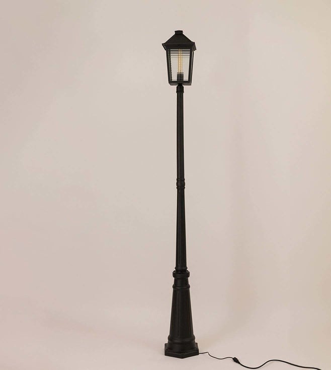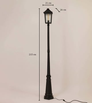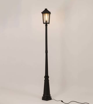 The Whispering Homes Black Metal & Glass Pole Light features a sleek black design, enhancing any outdoor space with a modern touch and ambient illumination. Disclaimer: All other items in the image are only for display purposes and will not be a part of the delivery content. Product colour may slightly vary due to photographic lighting sources. Country of Origin - India.