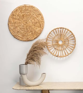 Enhance your decor with the Whispering Homes Natural Sabai Grass Wall Basket, featuring a charming natural color that adds an organic touch to any space. Disclaimer: All other items in the image are only for display purposes and will not be a part of the delivery content. Product colour may slightly vary due to photographic lighting sources. Country of Origin - India.