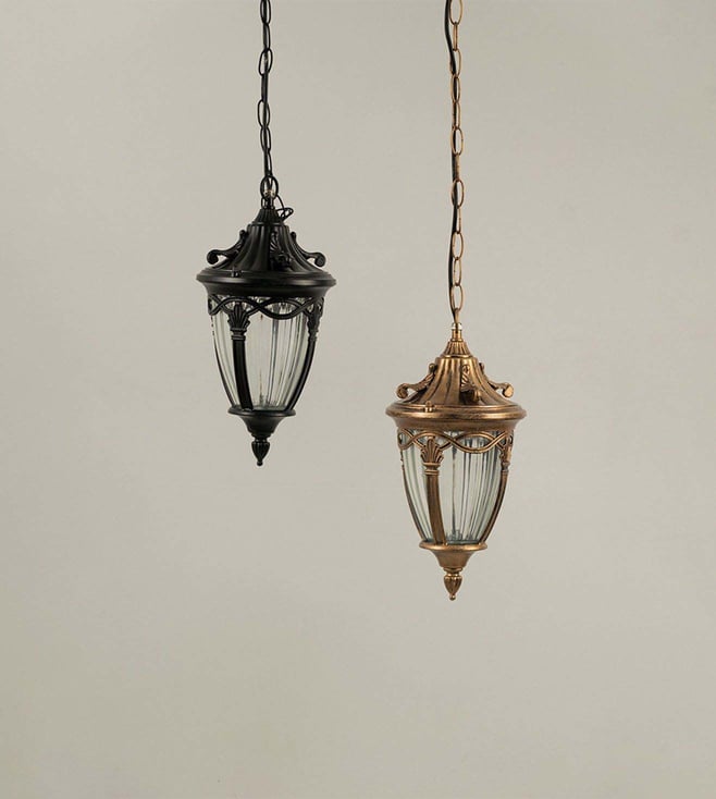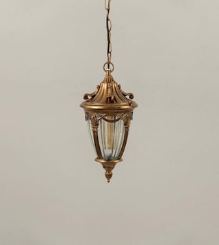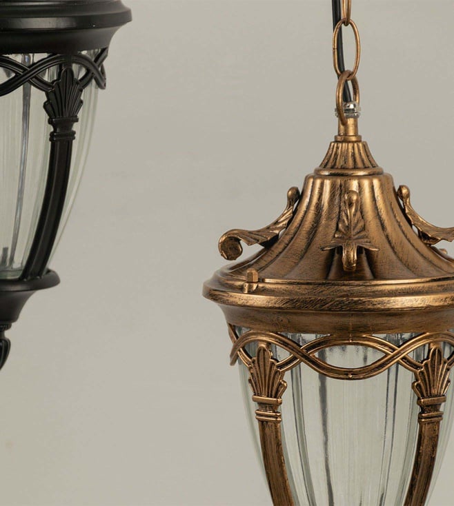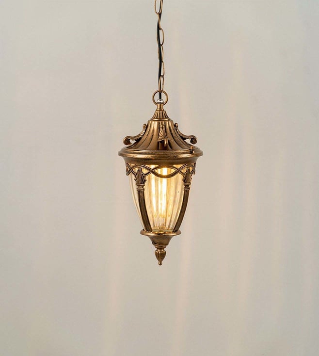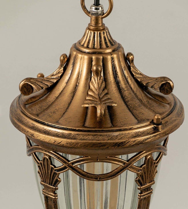 Illuminate your space with the Whispering Homes Bronze Metal Hanging Light. This elegant fixture combines a stylish bronze finish with glass elements for a modern touch. Disclaimer: All other items in the image are only for display purposes and will not be a part of the delivery content. Product colour may slightly vary due to photographic lighting sources. Country of Origin - India.