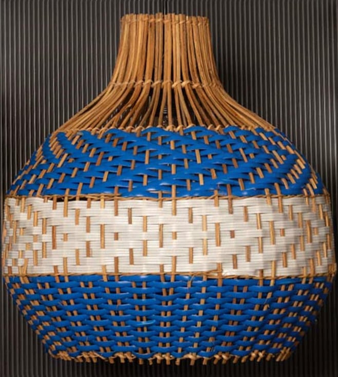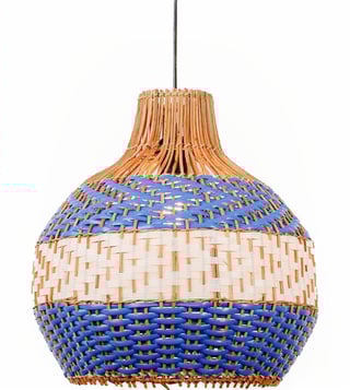 Whispering Homes Cupola Rattan Hanging Lamp - White & Blue