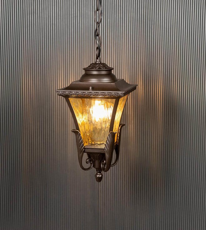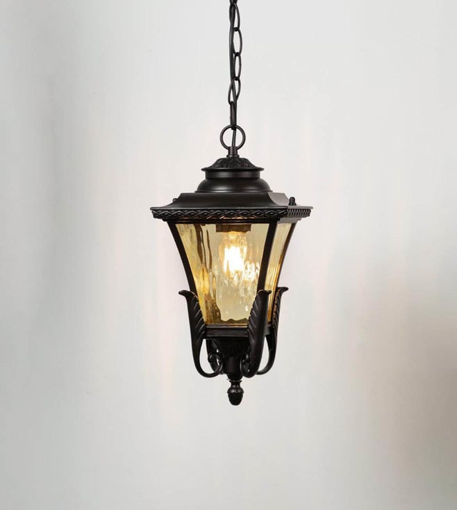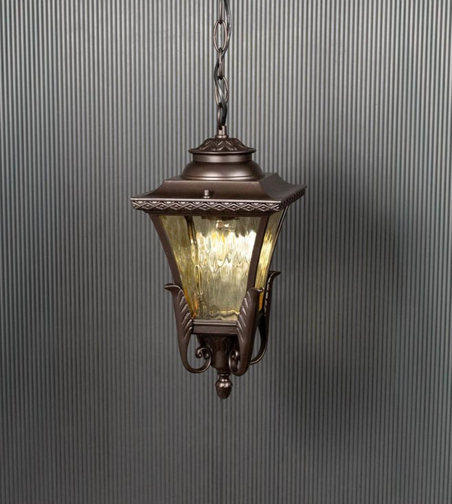 Illuminate your outdoor space in style with Whispering Homes Dark Brown Metal Adda Hanging Light. Its sleek design in brown metal adds a charming touch to your home decor. Perfect for any occasion.' Disclaimer: All other items in the image are only for display purposes and will not be a part of the delivery content. Product colour may slightly vary due to photographic lighting sources. Country of Origin - India.