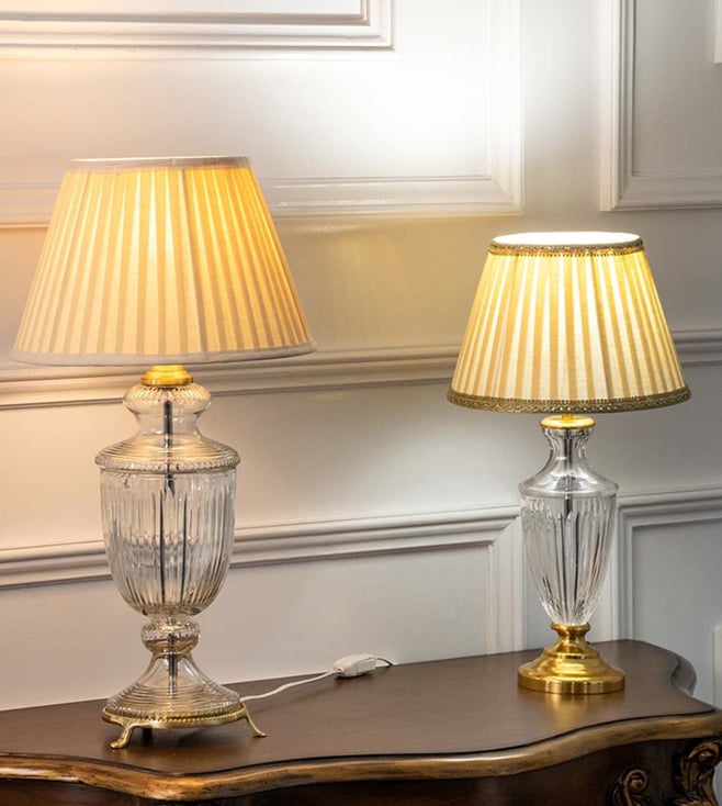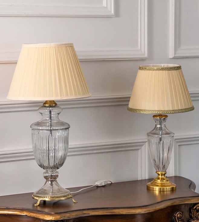 Whispering Homes Dewdrop Fancy Cut Glass Trophy Table Lamp With Beige Shade