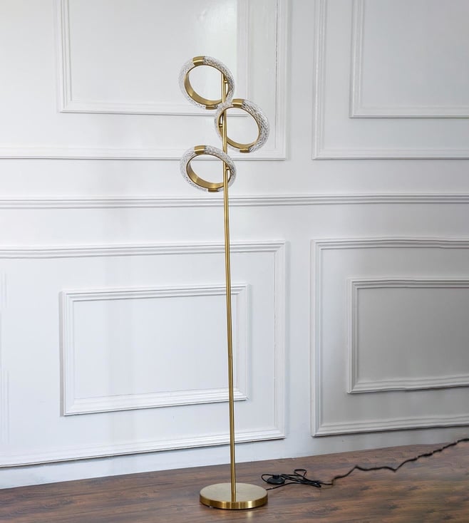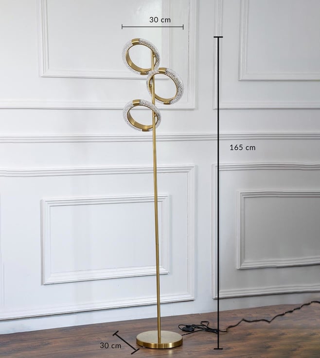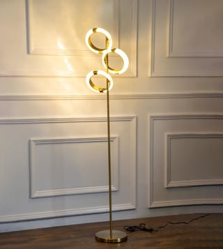Full of artistic vibes and dramatic finish, this stylish metallic floor lamp is perfect to level up the lighting set-up at your home decor. The eye-catching ring-like lights are attached in a combination of three on a sleek metal rod to introduce a chic decorative touch into your home decor. Proudly install it in the living room, bedroom or hallways. You can also use it for gifting your loved ones. Disclaimer: Product colour may slightly vary due to photographic lighting sources. Country of Origin - India.