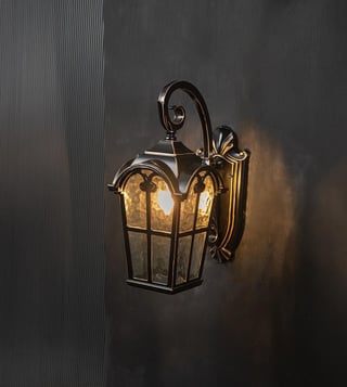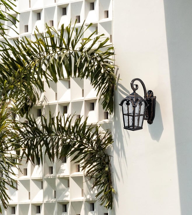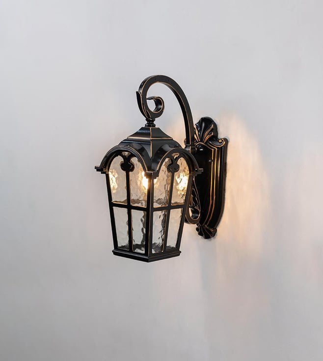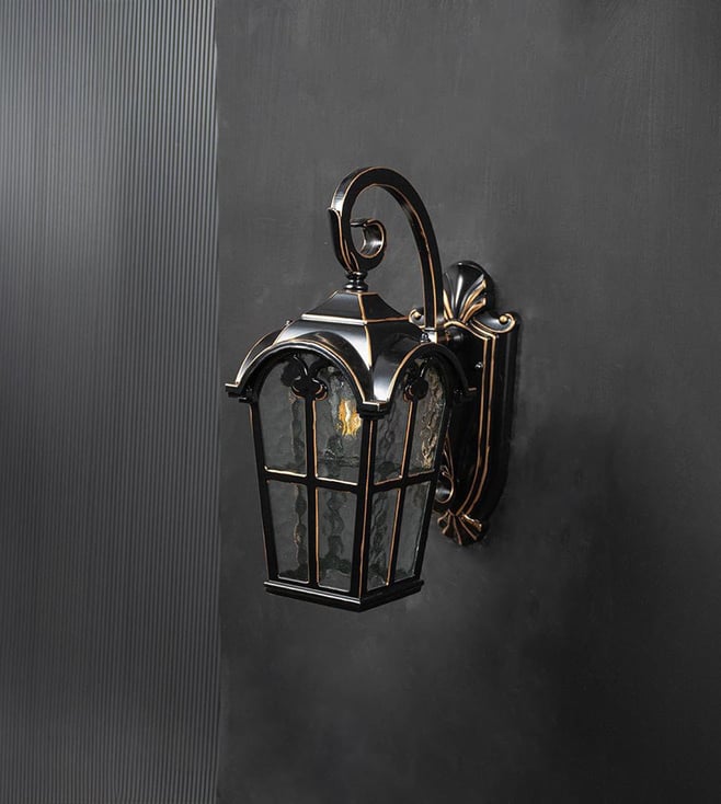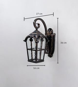 Add a touch of elegance to your outdoor space with the Whispering Homes Gold Metal Benton Wall Light. Perfect for any occasion and crafted with a beautiful gold finish, this light will elevate your home with a touch of luxury.' Disclaimer: All other items in the image are only for display purposes and will not be a part of the delivery content. Product colour may slightly vary due to photographic lighting sources. Country of Origin - India.