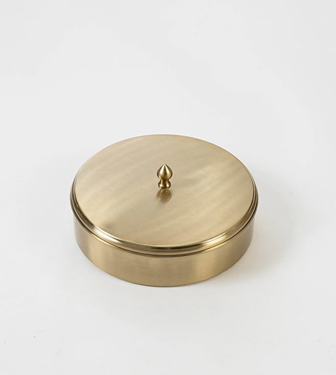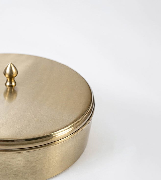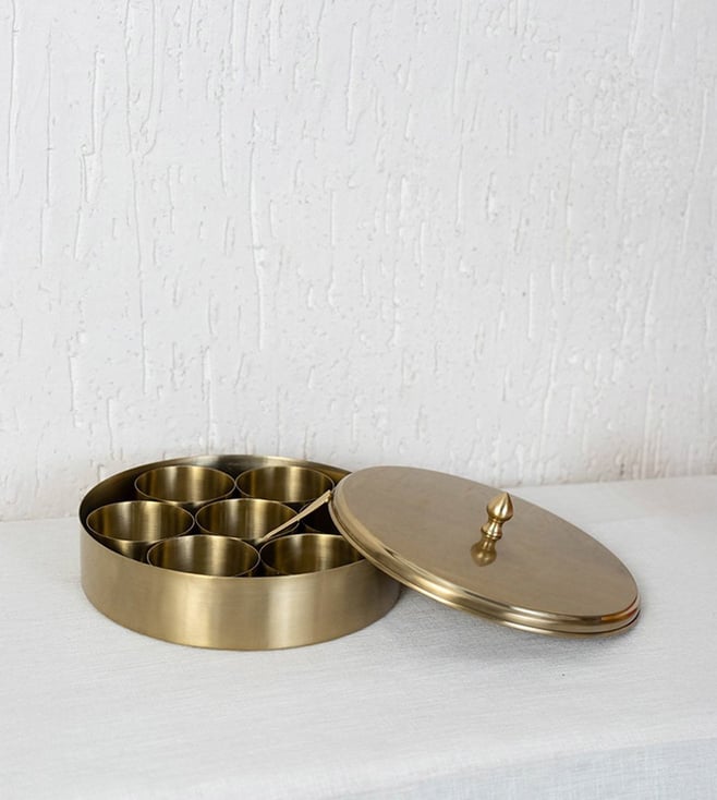 The Savour Brass Masala Box is a beautiful blend of tradition and utility, crafted to preserve the essence of your everyday spices in a timeless vessel. Handcrafted from high-quality brass, it features a smooth, polished finish with a delicately detailed lid and an elegant top knob for easy handling. Ideal for storing an array of Indian spices, this masala box brings both beauty and heritage to your kitchen space.