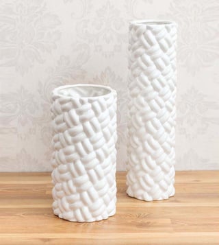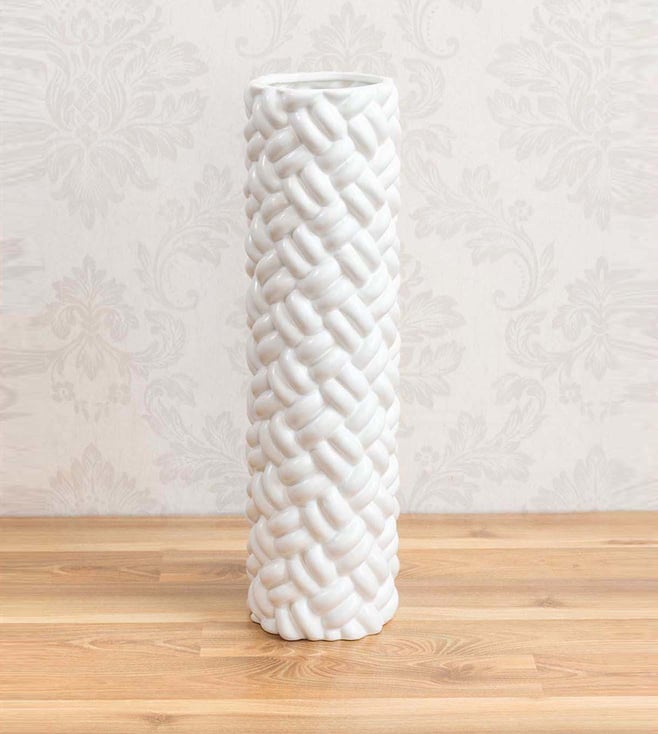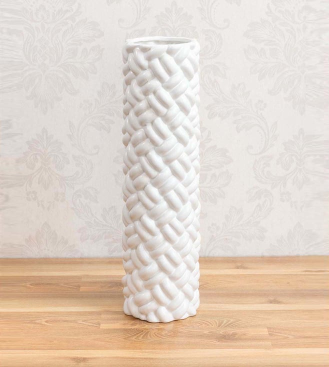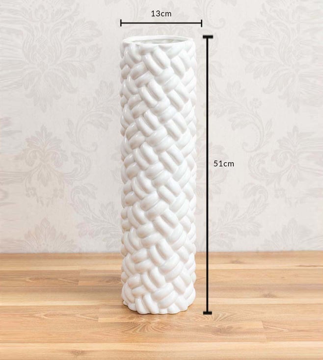 The textured surface of the Saifaldin ceramic vase is unforgettable to the touch. Embossed with a unique pattern that creates a distinct texture, the vase is like a piece of art. Its cylindrical shape makes it the perfect home for your botanicals. However, it is also versatile enough to be used as a statement piece. It is best suited to create a dynamic decor. Disclaimer: All other items in the image are only for display purposes and will not be a part of the delivery content. Country Of Origin - India.