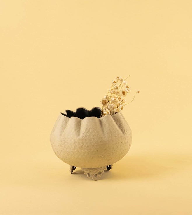 The Whispering Homes Grey Metal Vase combines elegance and modern design, perfect for enhancing any space with its sleek grey finish. Ideal for contemporary decor. Disclaimer: All other items in the image are only for display purposes and will not be a part of the delivery content. Product colour may slightly vary due to photographic lighting sources. Country of Origin - India.