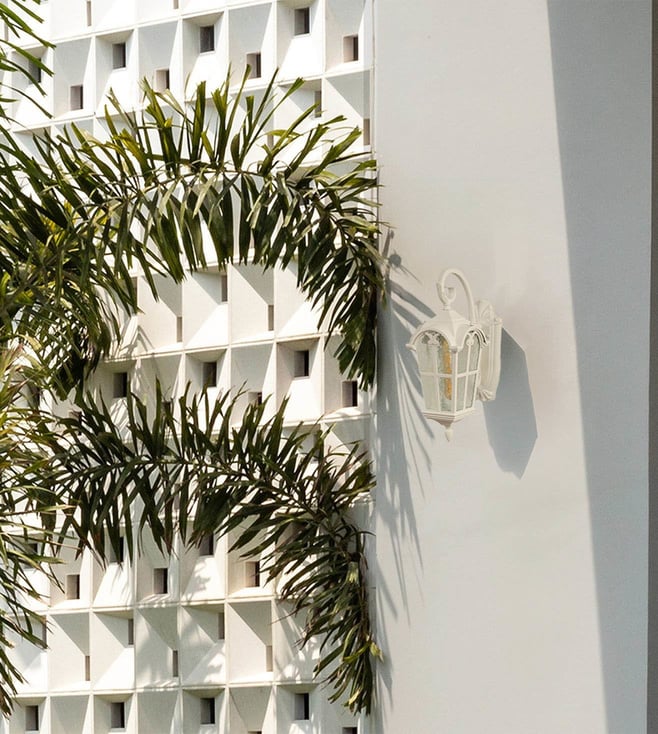 The Whispering Homes White Metal & Glass Wall Light combines elegant design with functionality, offering a stylish lighting solution for any space. Disclaimer: All other items in the image are only for display purposes and will not be a part of the delivery content. Product colour may slightly vary due to photographic lighting sources. Country of Origin - India.