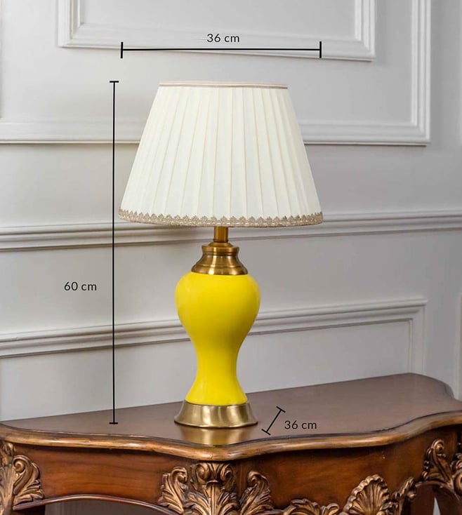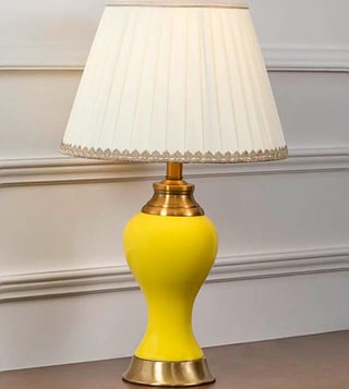 Illuminate your bedroom with this table lamp. This ceramic vintage lamp exudes charm, adding a touch of elegance to your space. Ideal for bedside use, it enhances ambience while bringing a timeless aesthetic to your room's decor. Disclaimer: Product colour may slightly vary due to photographic lighting sources. Country of Origin - India.