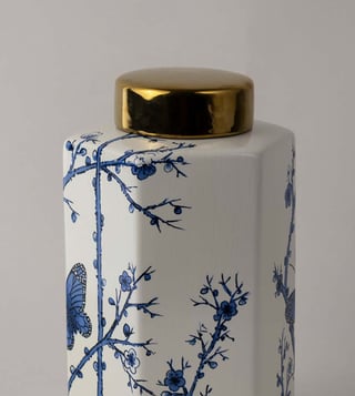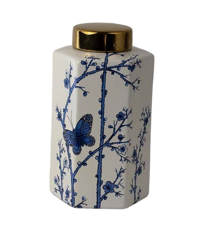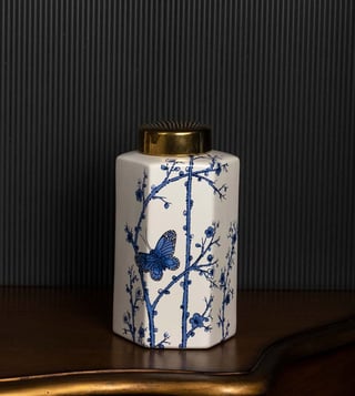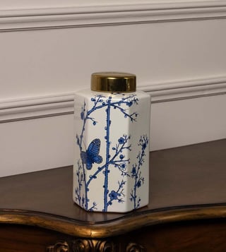 Transport your space to coastal elegance with this ceramic jar. Its intricate details and vibrant colours evoke the charm of seaside living. Blending functionality with aesthetic appeal, this jar becomes a focal point in your home decor, capturing the essence of Mediterranean allure and infusing your space with coastal sophistication. Disclaimer: Product colour may slightly vary due to photographic lighting sources. Country of Origin - India.