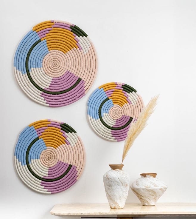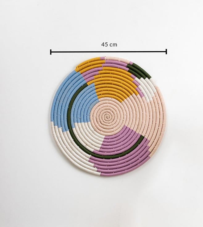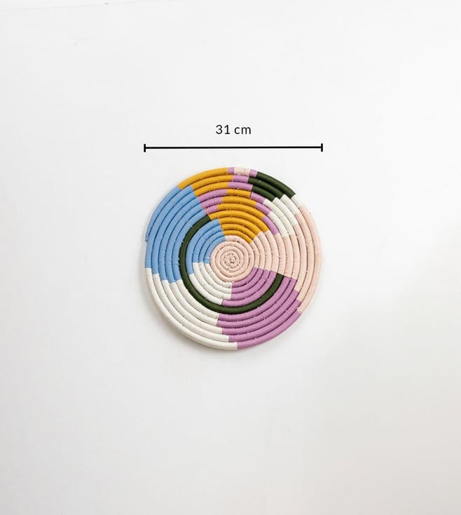 Enhance your decor with the Whispering Homes Multicolor Sabai Grass Wall Basket. This vibrant, eco-friendly piece adds a charming touch to any space. Disclaimer: All other items in the image are only for display purposes and will not be a part of the delivery content. Product colour may slightly vary due to photographic lighting sources. Country of Origin - India.