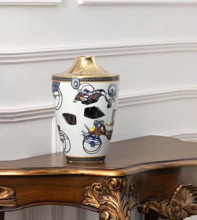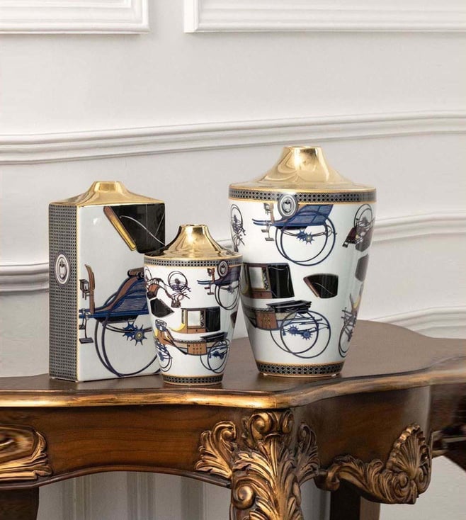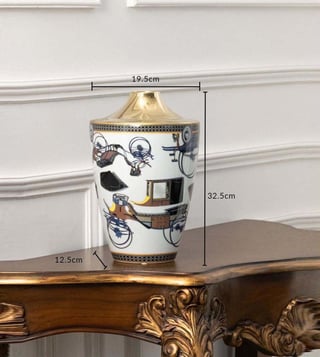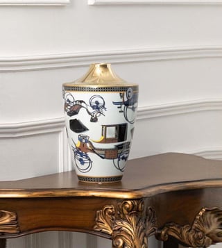 This graceful ornate ceramic jar livens up your home decor. It is a beautiful decor accent that boasts radiant hues and finish. With a unique silhouette embellished with soft vintage caricatures like chariots, it makes it a modern and aesthetic decor accent to instil a nice dash of hues into the ambience. You can proudly use it as a container for non-perishable items in the living room or for storing your favourite candies in the kitchen. Disclaimer: All other items in the image are only for display purposes and will not be a part of the delivery content. Country Of Origin - India.