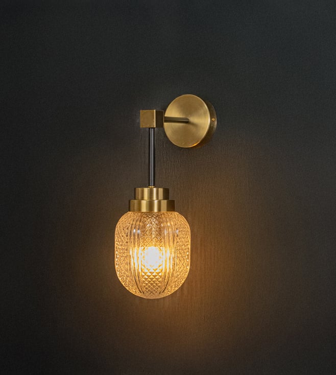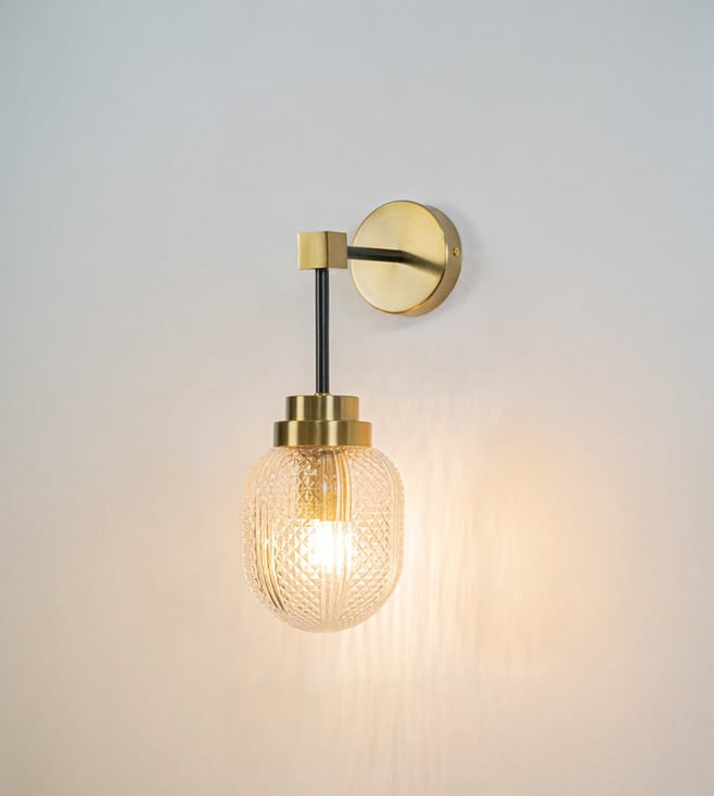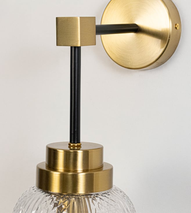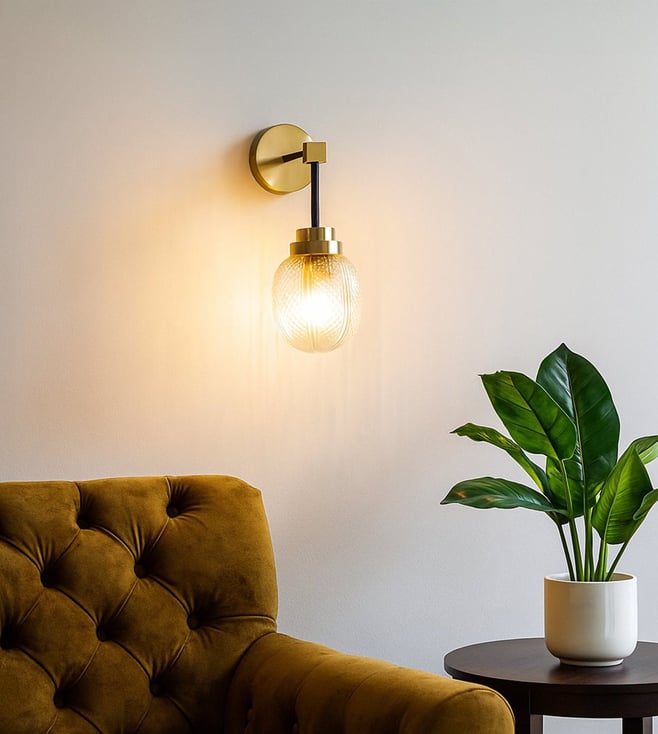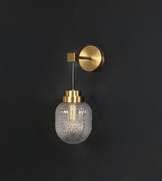 The Natasha Wall Sconce blends classic charm with a modern twist. Featuring a golden metal finish and a textured glass globe, it adds warmth and sophistication to any interior wall. Key Features: Elegant gold metal arm with contrasting black accent Textured glass globe for soft, ambient lighting Compatible with E27 holder for standard bulb use Crafted from high-quality metal and patterned glass Perfect for bedside walls, hallways, vanity areas, or reading corners Wall-mounted for focused, downward illumination.