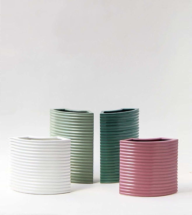 Matte finish radiating pretty colour, Juna ceramic vase is a stunner which exhibits classy and glossy appeal. The unique designer body embellished with symmetrical lines running horizontally provides it with an aesthetic artisanal appeal that attracts the lover of art and crafts. It is ideal to adorn your favourite blossoms or you can also display it on its own to bring in glamorous and modern contemporary touch to your interior palette. Disclaimer: All other items in the image are only for display purposes and will not be a part of the delivery content. Country Of Origin - India.
