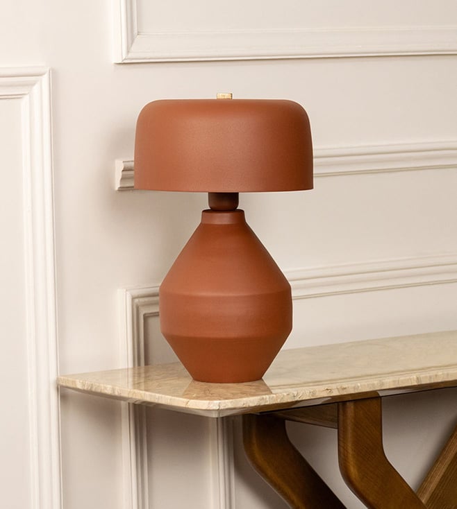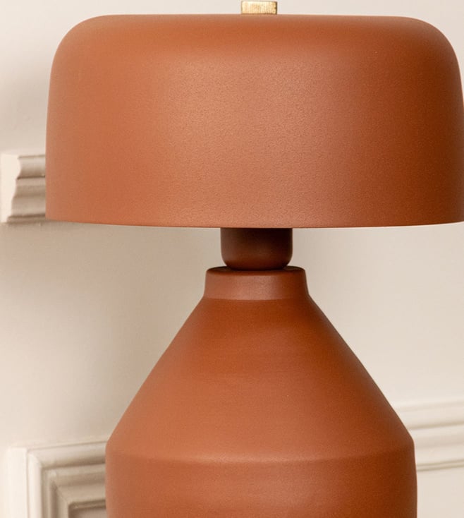 Illuminate your space with the Whispering Homes Brown Metal Table Lamp, combining elegance and warmth for a cozy atmosphere. Disclaimer: All other items in the image are only for display purposes and will not be a part of the delivery content. Product colour may slightly vary due to photographic lighting sources. Country of Origin - India.