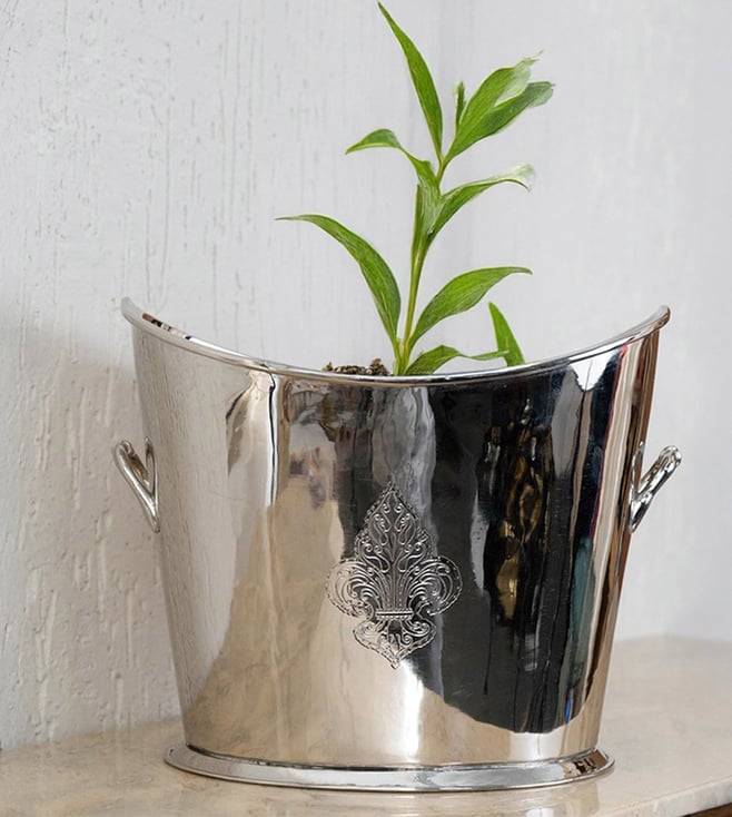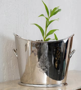 The Rohini Brass Planter is a refined accent piece that merges traditional craftsmanship with contemporary elegance. Made from premium brass and finished with a lustrous silver coating, it features a sleek, tapered silhouette with smooth curves and minimalist ring handles. Its cool metallic tone and clean design make it a sophisticated addition to modern, transitional, and heritage-inspired interiors alike.